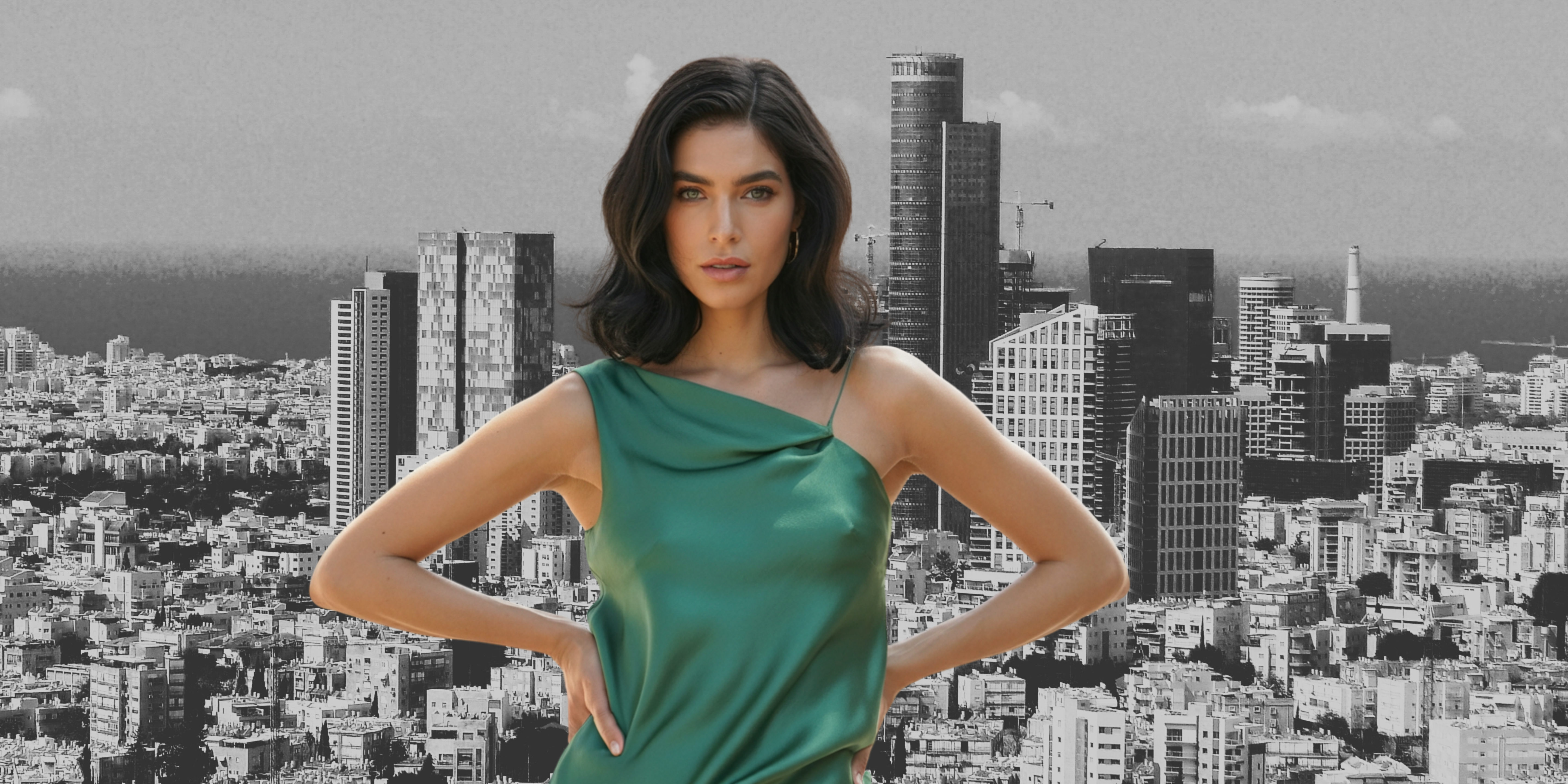 סט אלגנטי דו־חלקי מבד סאטן מבריק עם גזרה נשפכת