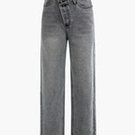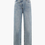 ג׳ינס ישר בגזרה גבוהה עם מראה וינטג׳ נקי