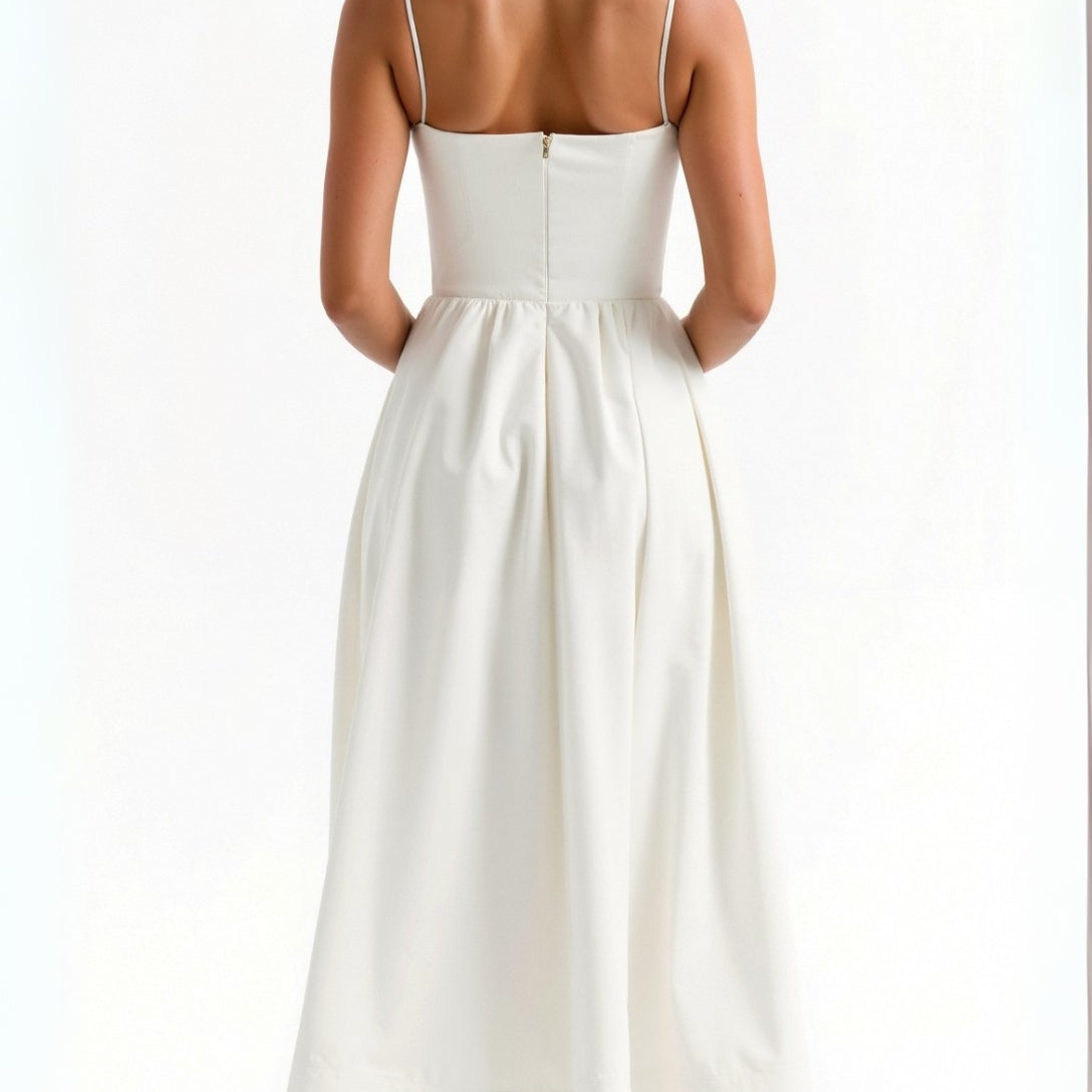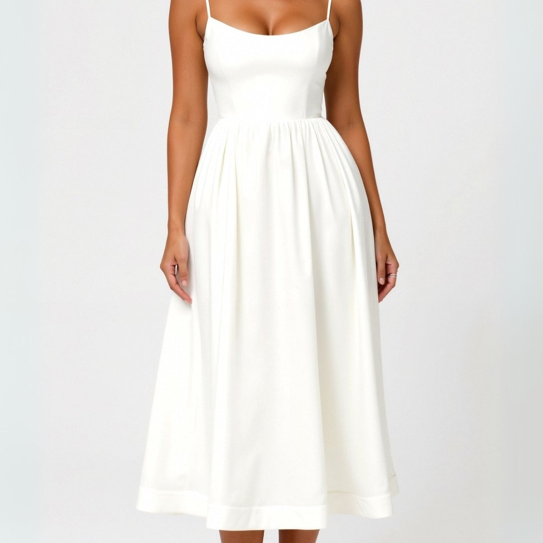 שמלת מידי אלגנטית עם כתפיות דקות וגזרה מחמיאה