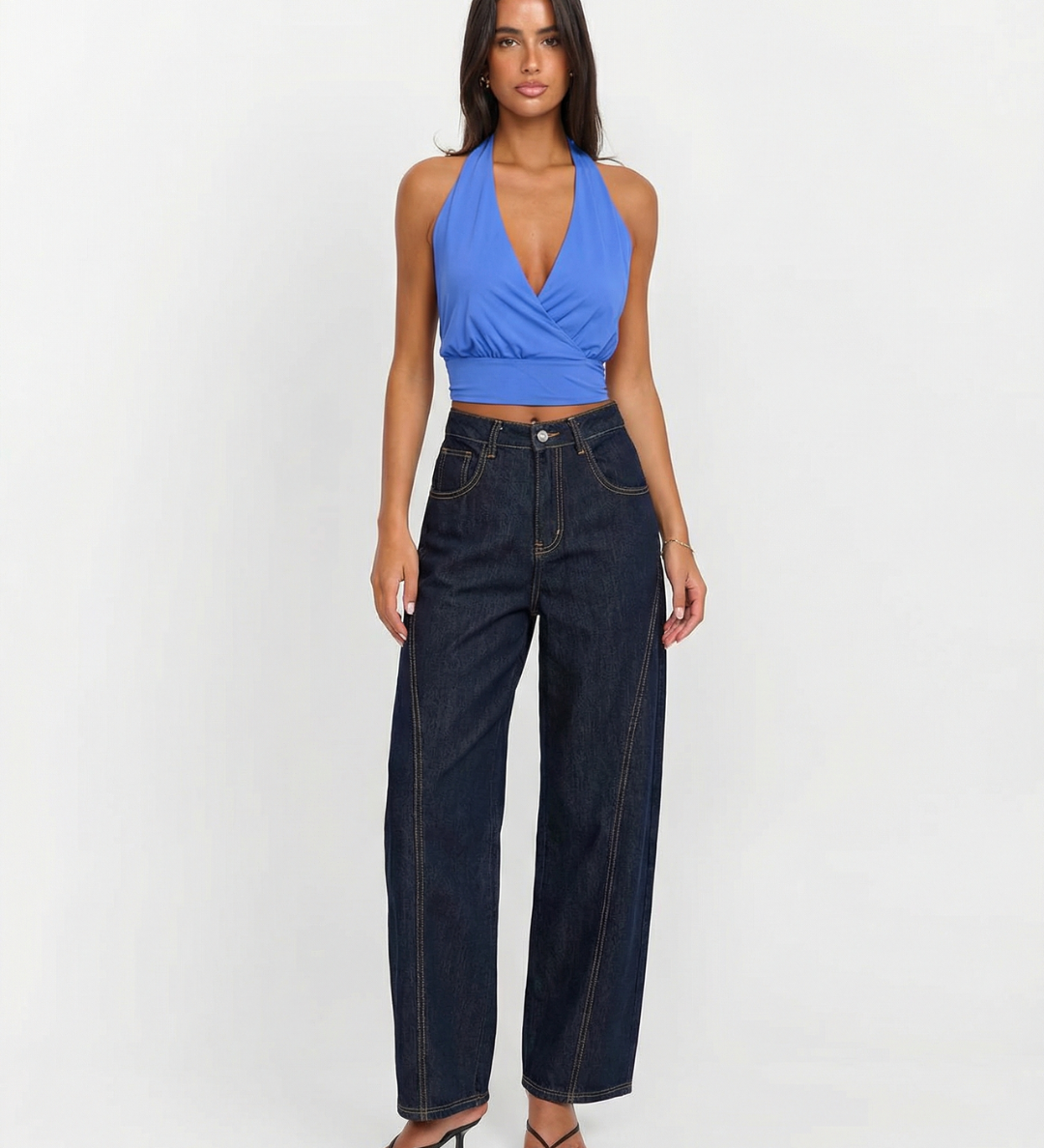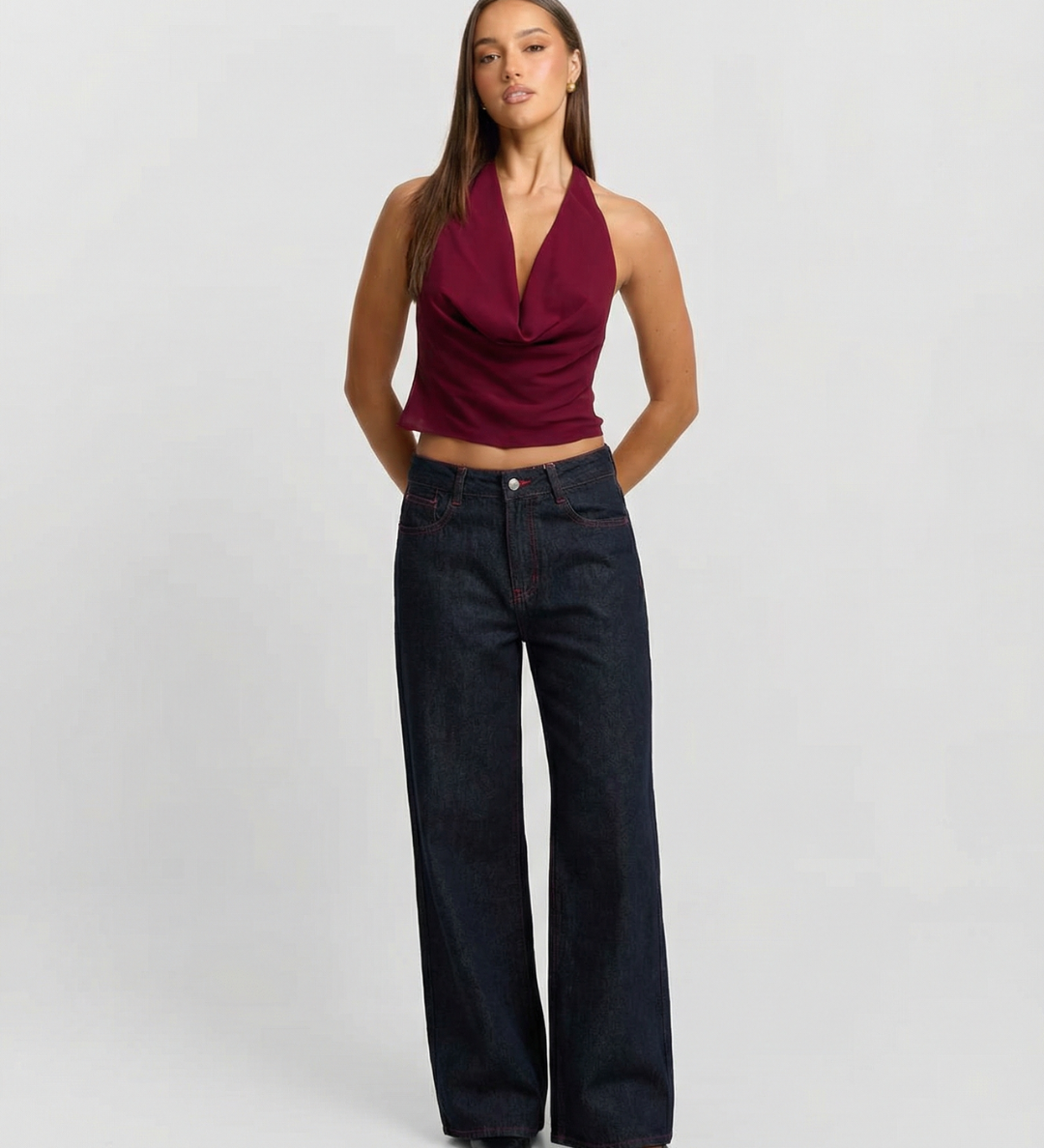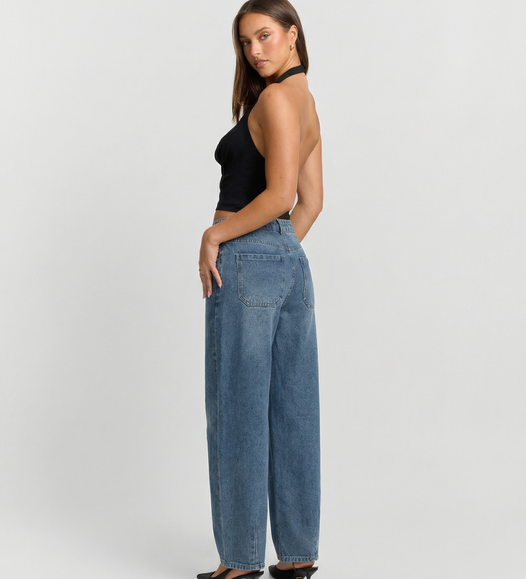 High Waist Wide Leg Denim Jeans with Back Detail