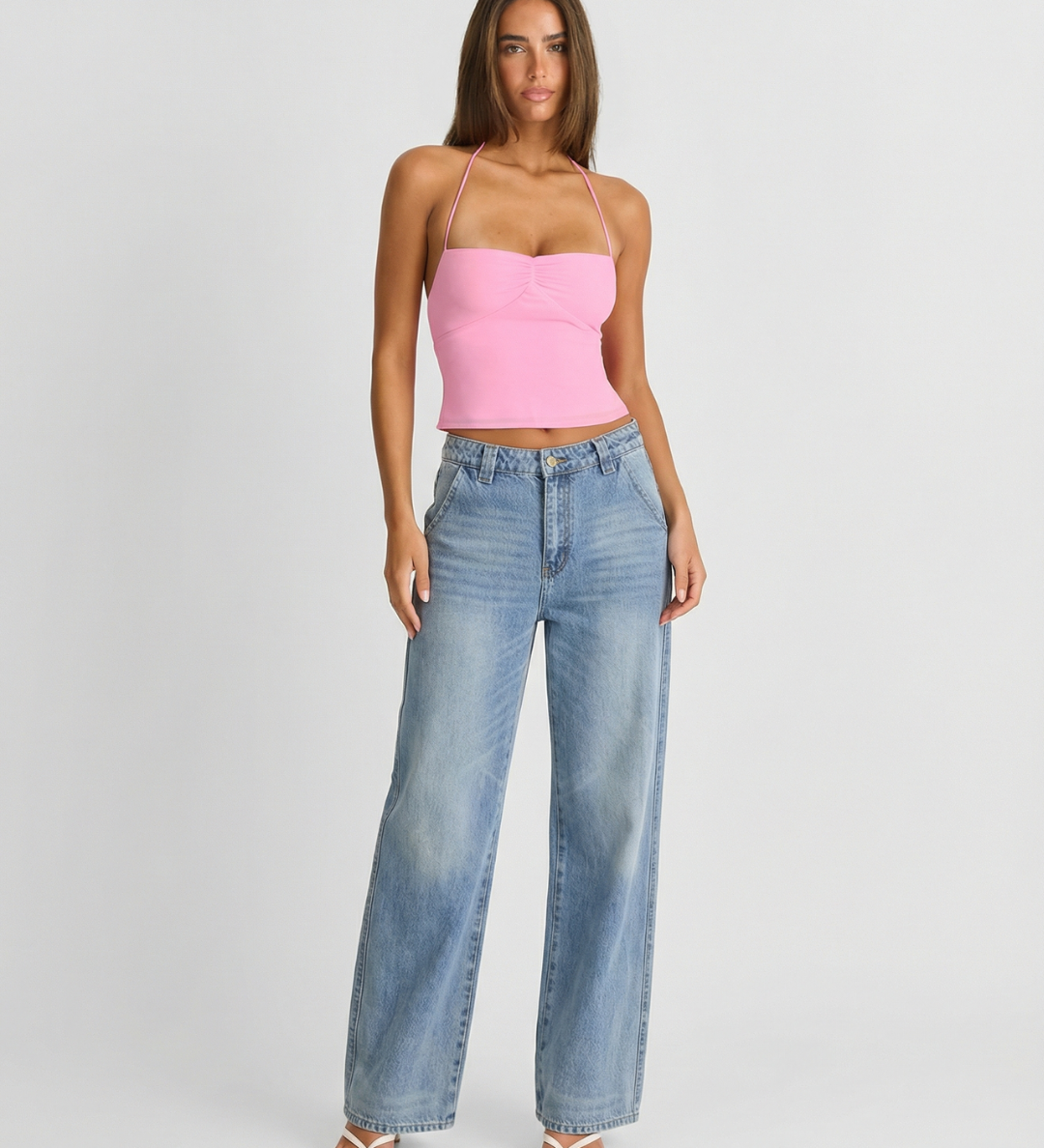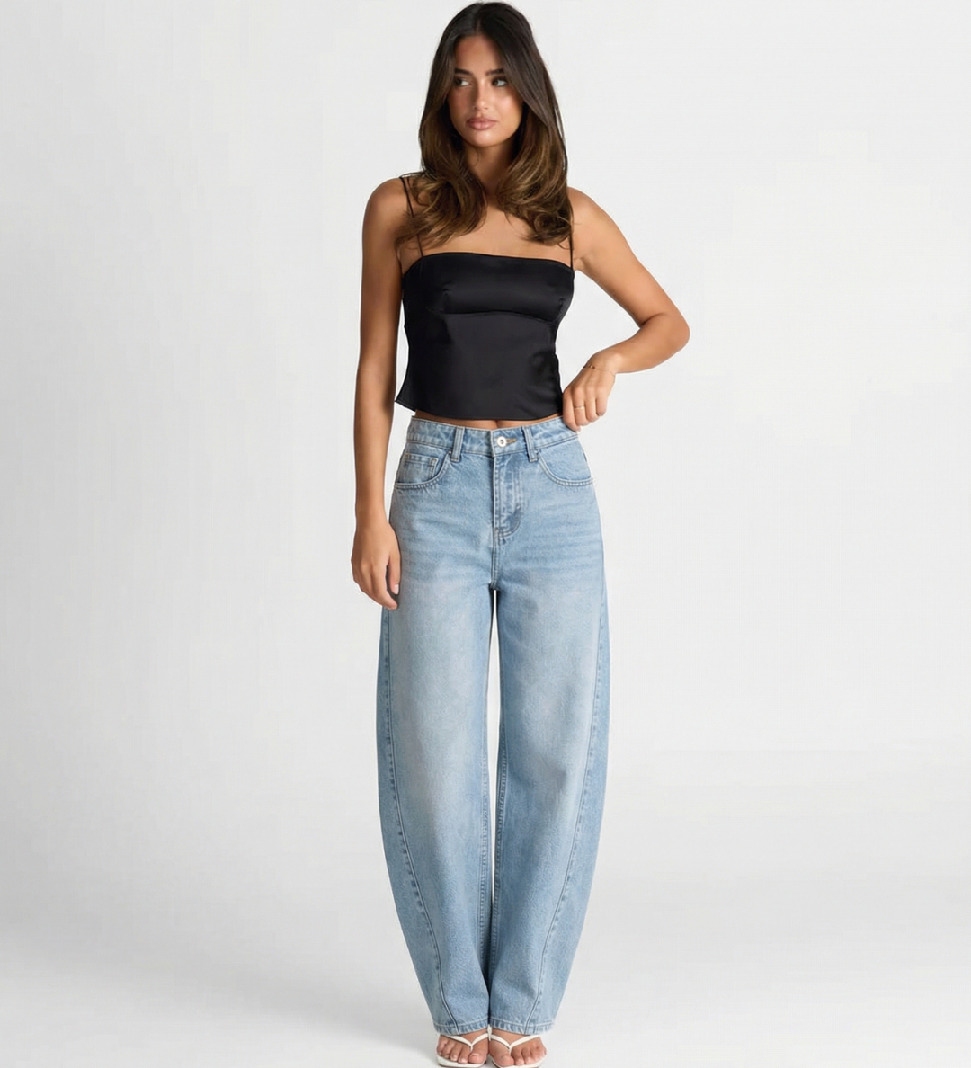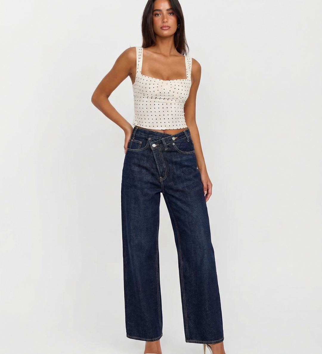 High Waist Straight Leg Denim Trousers with Modern Fit