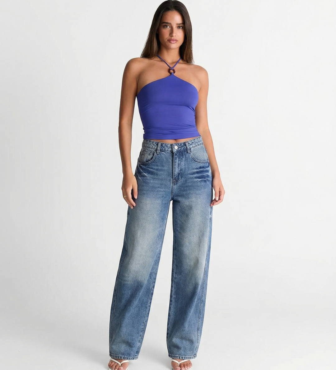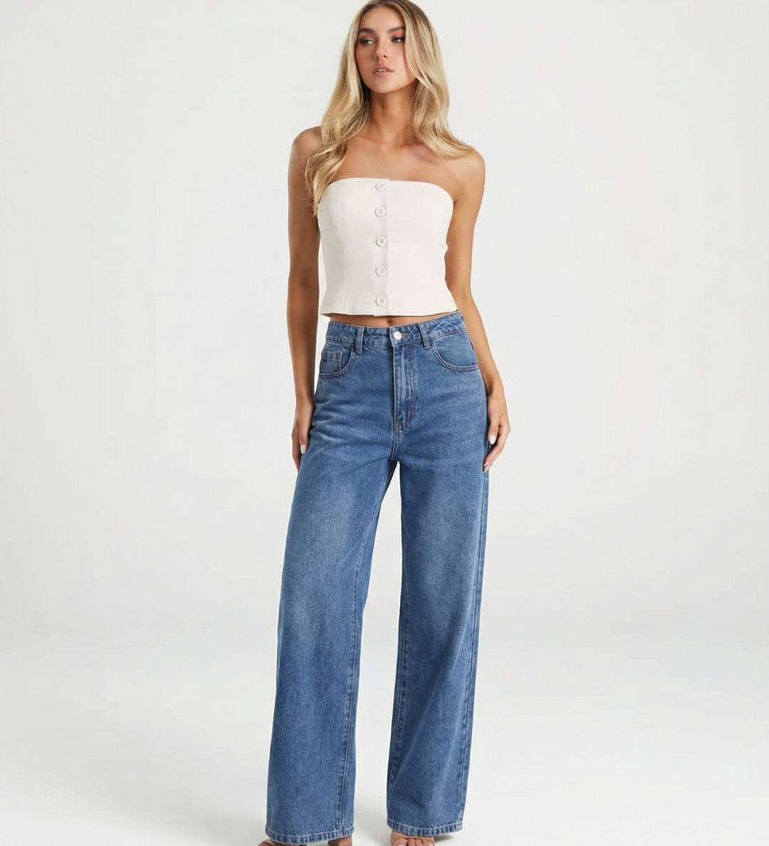 High Waist Wide Leg Denim Jeans with Classic Blue Wash