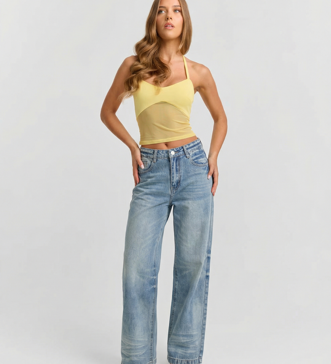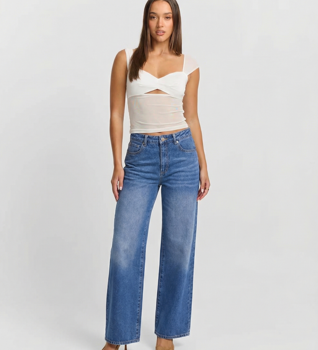 High Waist Wide Leg Denim Jeans with Faded Wash
