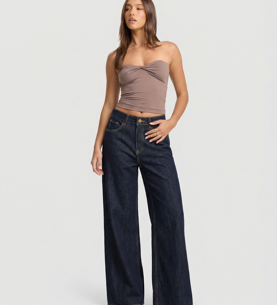 High Waist Wide Leg Denim Trousers with Modern Silhouette