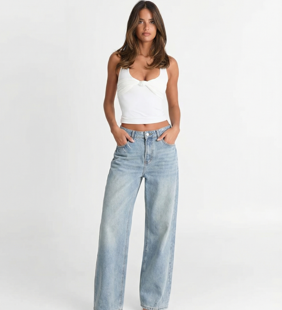 High Waist Wide Leg Denim Jeans with Light Wash