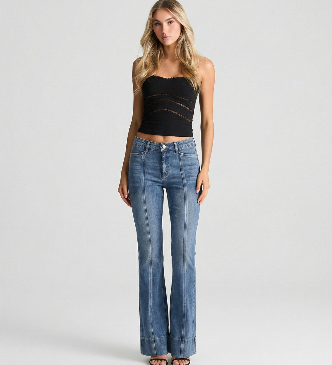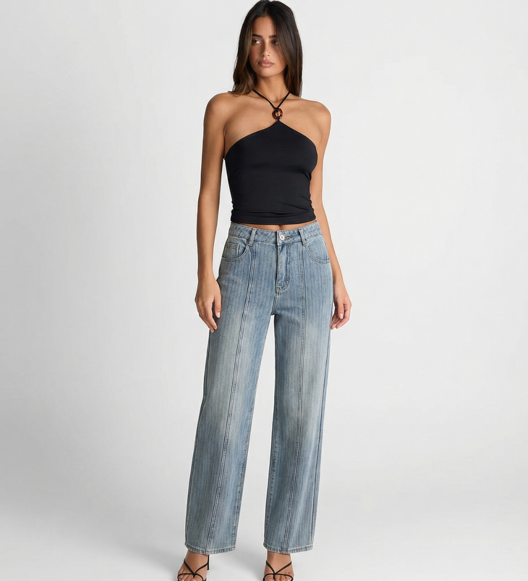 High Waist Straight Leg Denim Jeans with Clean Finish