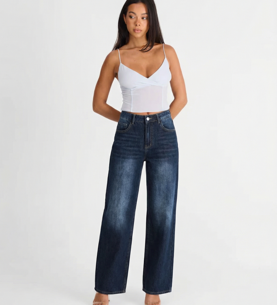 High Waist Wide Leg Denim Jeans with Dark Wash