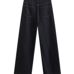 These high waist wide leg black denim trousers are designed to deliver a sleek, confident silhouette with timeless appeal. Featuring a flattering high-rise waist and a relaxed wide leg cut, these trousers create a balanced shape that elongates the legs while maintaining comfort and ease throughout the day. The deep black denim finish adds a refined, versatile touch that makes them suitable for both casual and elevated styling.