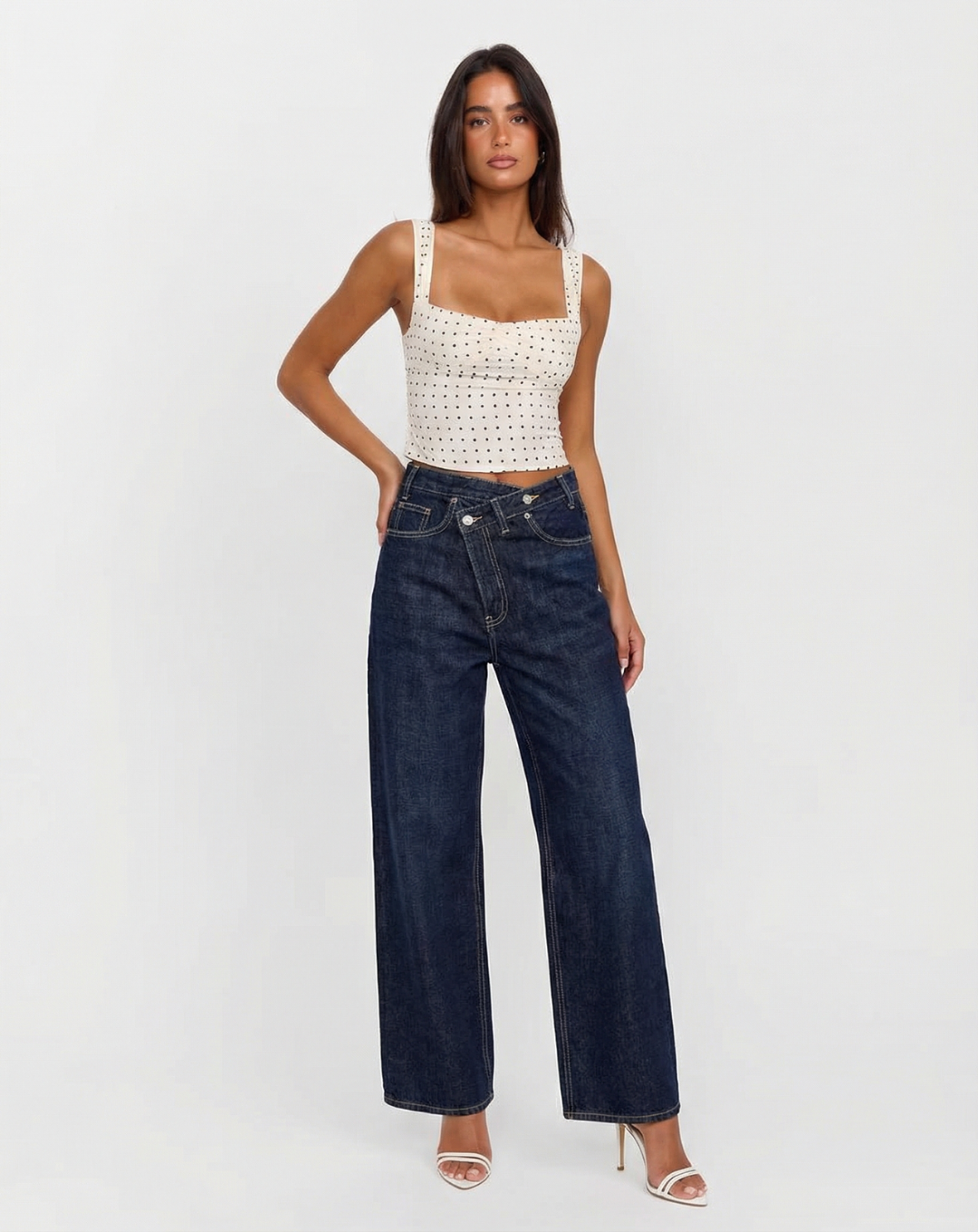 Perfect for styling with fitted tops, blouses, or cropped silhouettes, these trousers allow you to create looks that feel intentional yet effortless. The wide leg design adds movement and a contemporary edge, while the structured waist ensures a secure and flattering fit. Whether worn with heels for a polished appearance or styled with flats for a relaxed feel, these denim trousers adapt easily to different occasions and personal styles.