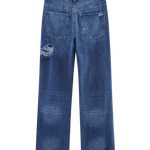 These high waist wide leg ripped denim jeans are designed to bring a confident, laid-back edge to everyday styling while maintaining a flattering and wearable silhouette. Featuring a structured high-rise waist and a relaxed wide leg cut, these jeans create a balanced shape that elongates the legs and allows comfortable movement throughout the day. The distressed detailing adds a modern, casual character that gives the jeans a bold yet effortless look.