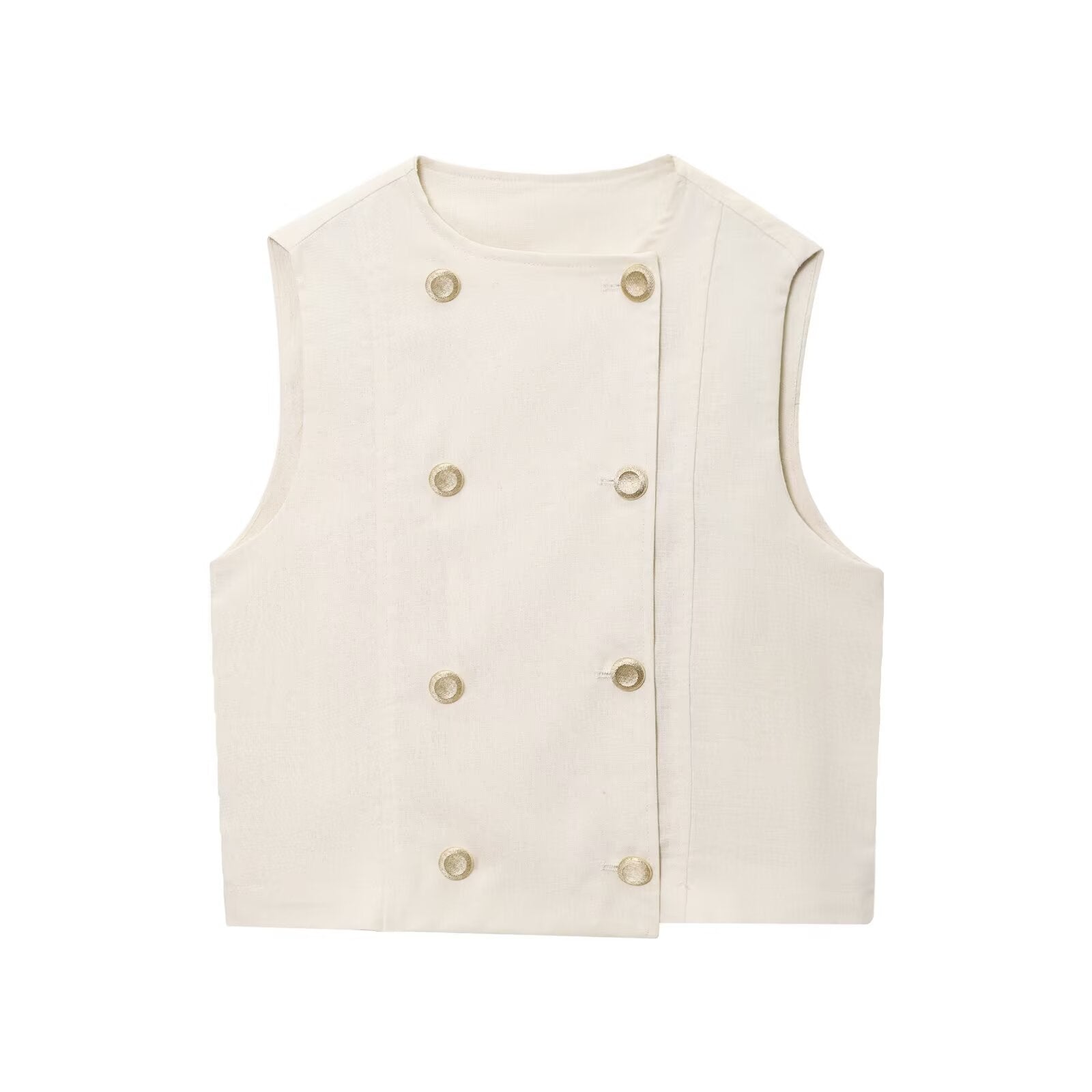Sleeveless Button Vest and High Waist Short Set for Modern Style