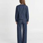 - Two-piece set with button front jacket and trousers