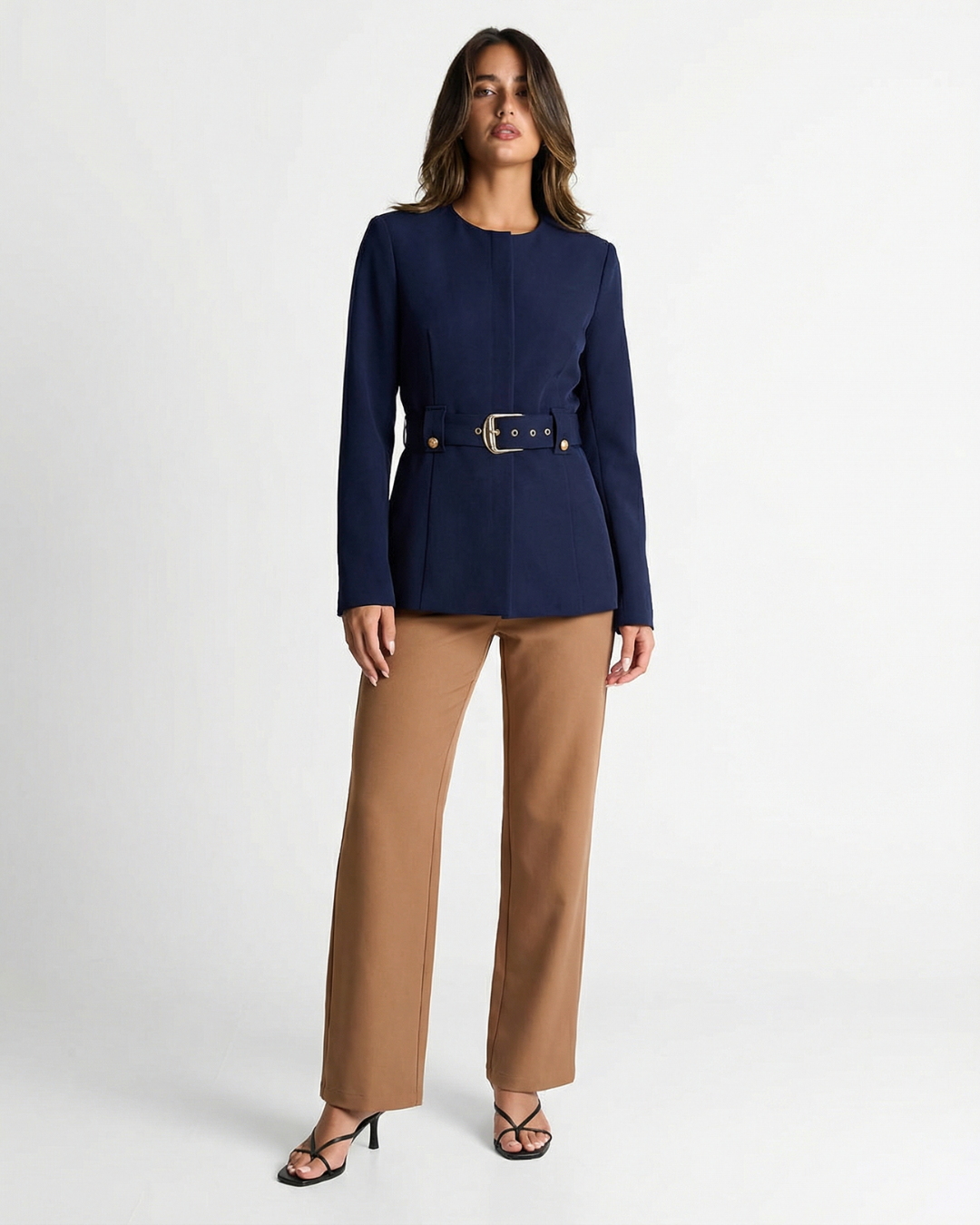 This long sleeve top is designed to bring refined structure and effortless elegance to everyday and occasion styling. Featuring a clean silhouette with a softly tailored fit, the design is elevated by a belted waist that gently defines the shape and creates a polished finish. The long sleeves add balance and versatility, making the top suitable for a wide range of seasons and settings.