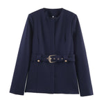 Ideal for workwear, dinners, or elevated casual outfits, this top pairs easily with trousers, skirts, or denim for a complete and sophisticated look. The minimalist design allows the belted detail to stand out without feeling overpowering, offering a timeless aesthetic that works across different styles. Comfortable yet refined, this top is perfect for those who value pieces that transition effortlessly from day to evening. Its versatile design ensures it remains a reliable wardrobe staple, combining modern simplicity with elegant detailing.