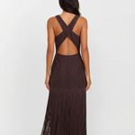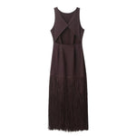 Women’s Sleeveless Fringe Hem Maxi Dress with Open Back